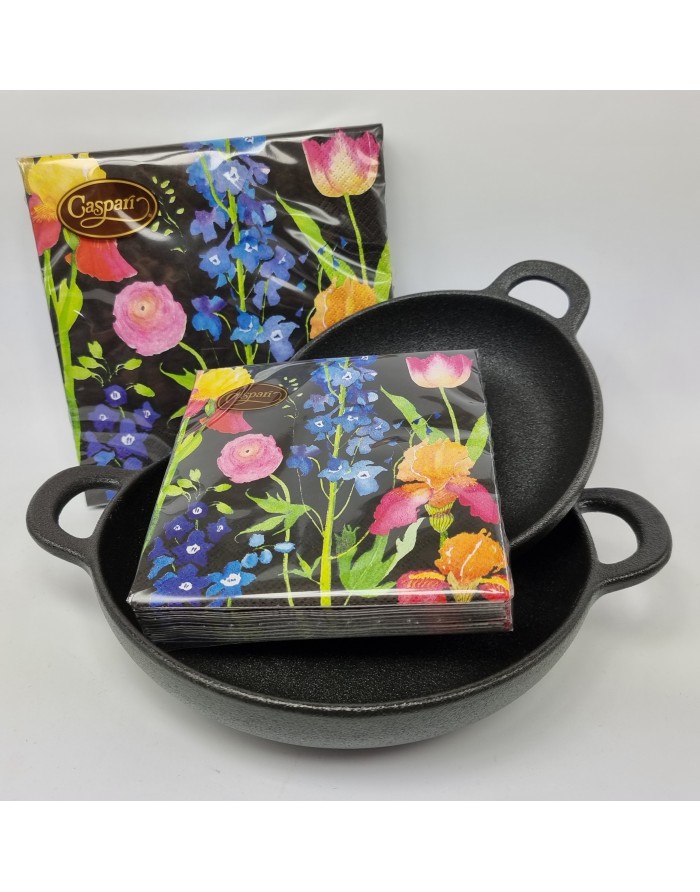 Cazuela redonda negra con asas porcelana 19 cm