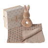 Set compuesto por una muselina de algodón y un conejo sonajero.
