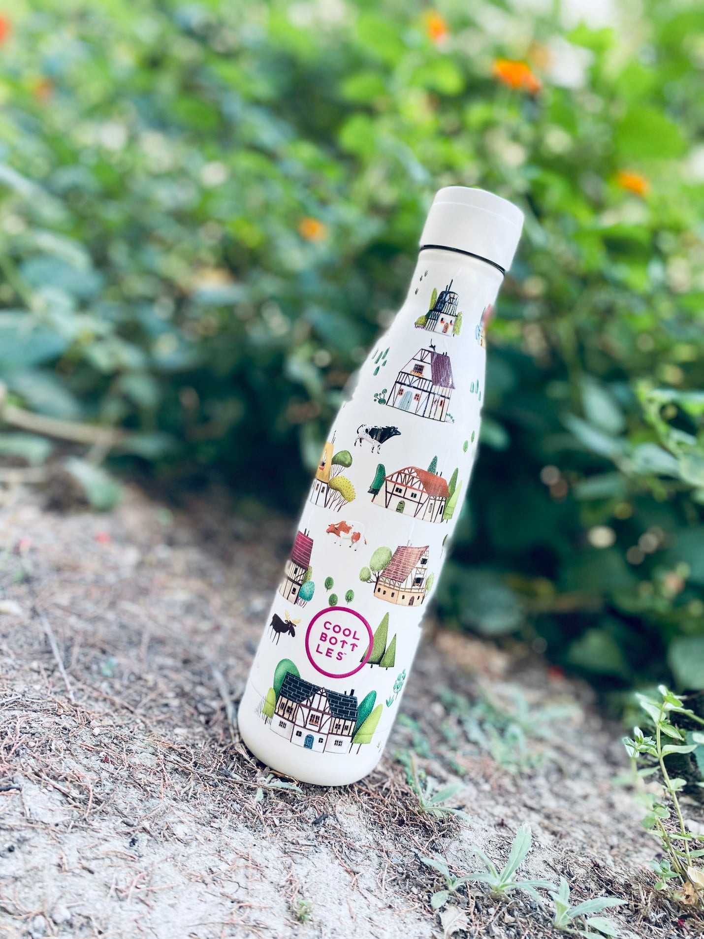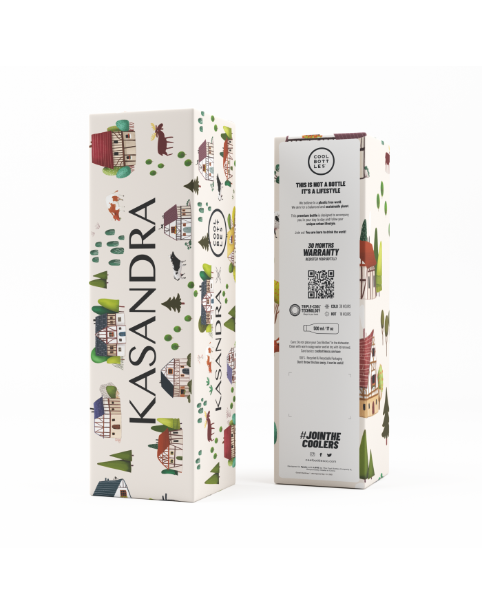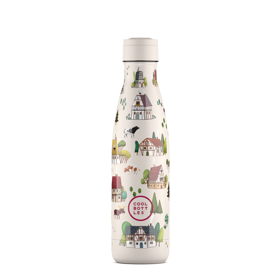 Botella de acero con diseño estampado de calidad Premium.