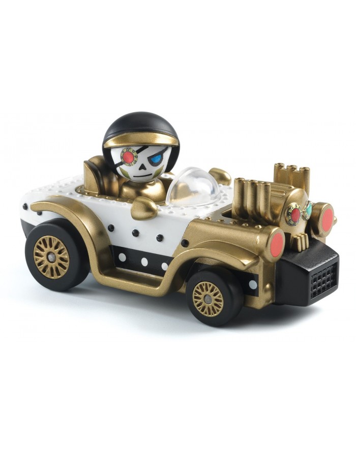 Piloto loco al volante de un extravagante bólido.