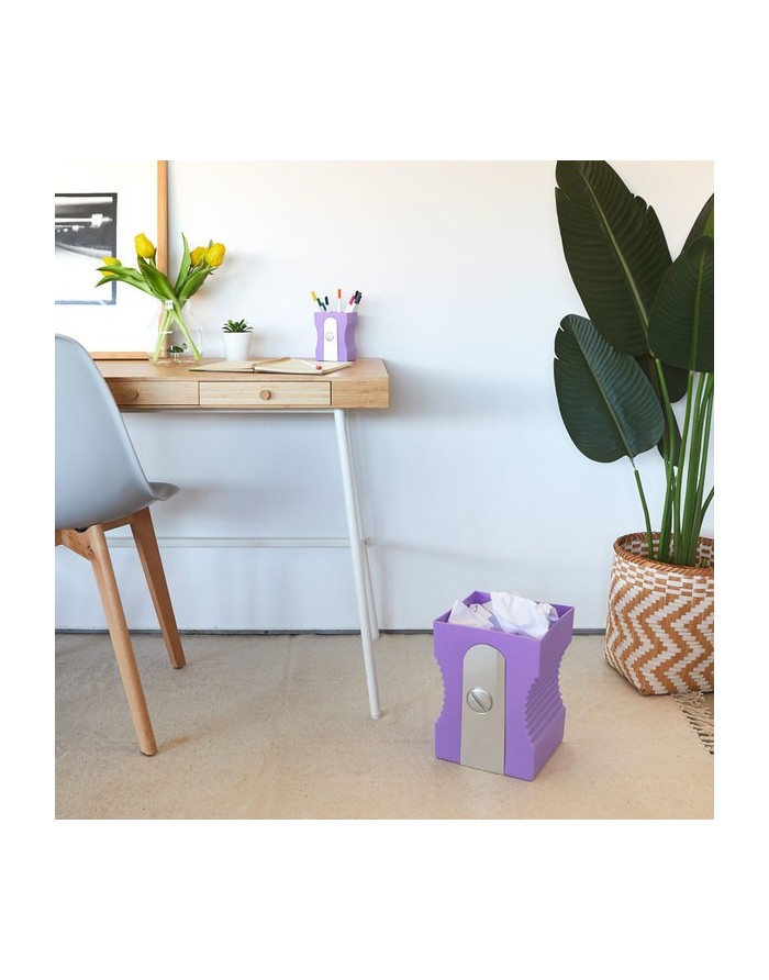 Papelera amarilla con forma de sacapuntas.
