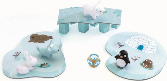Juego de cooperación, donde los jugadores tienen que conseguir que los 4 animales regresen al iglú. Para ello tienen que atravesar con cuidado un puente, ya que puede hundirse. Lo importante de este juego es que todos los jugadores tienen un mismo objetivo común y todos ganan o todos pierden. El juego viene con 3 tableros , 4 animalitos y 1 dado. De 2 a 4 jugadores. El tiempo de duración de cada partida es de unos 10 minutos. Edad recomendada de 2, 5a 5 años.