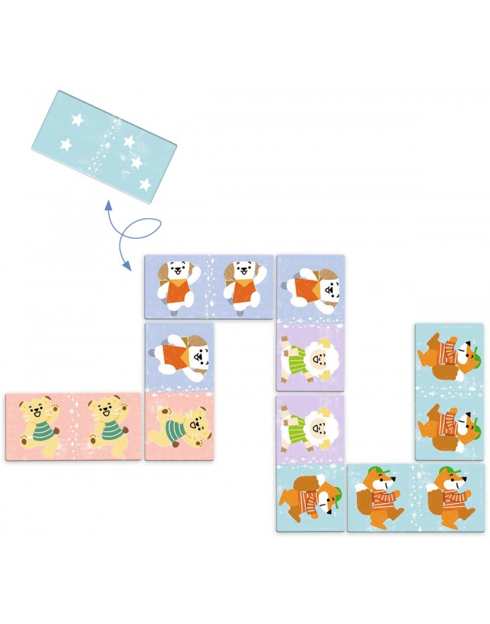 Tradicional juego de domino con 28 piezas con simpáticas ilustraciones de animales.