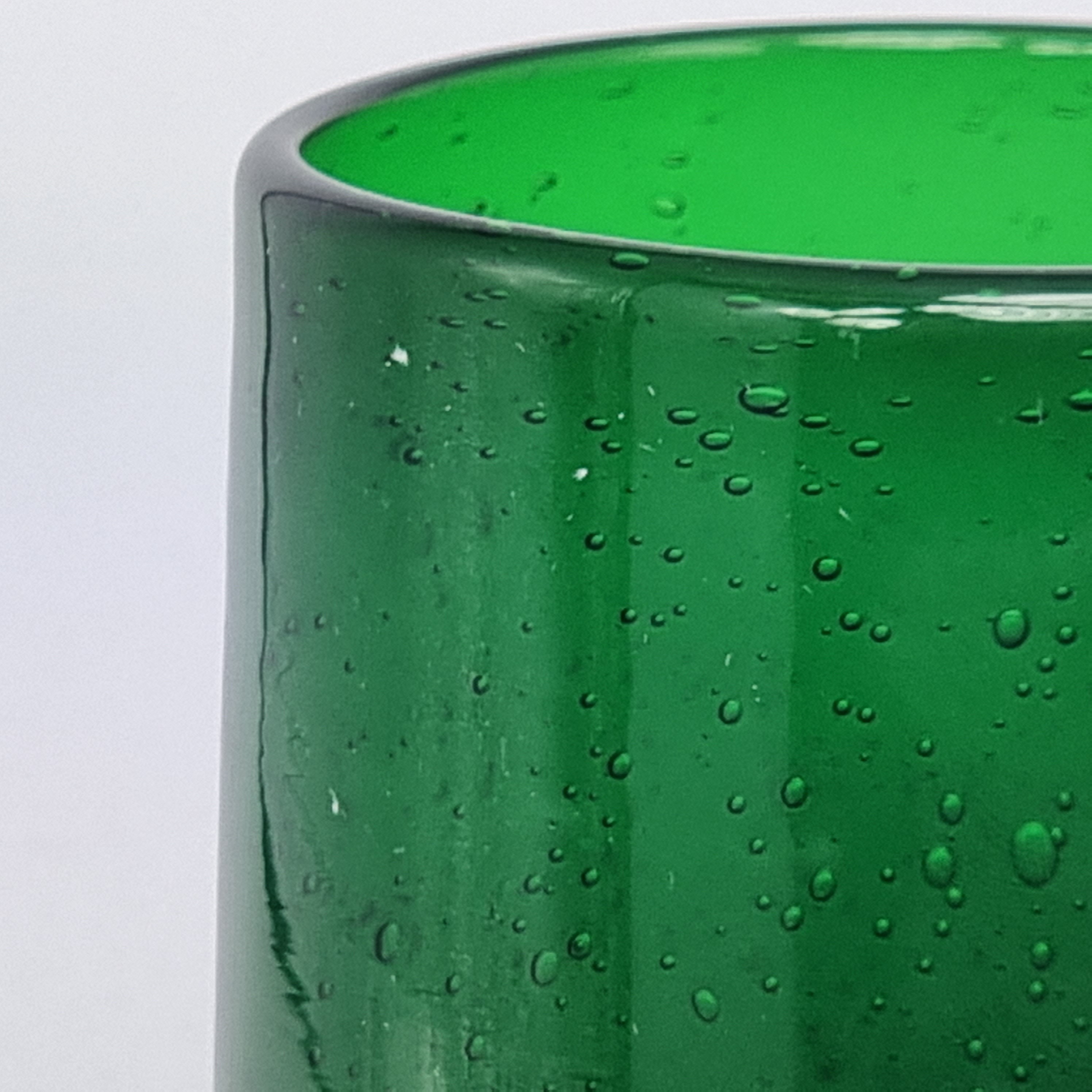 Set de 6 vasos de cristal con burbujas en su interior.