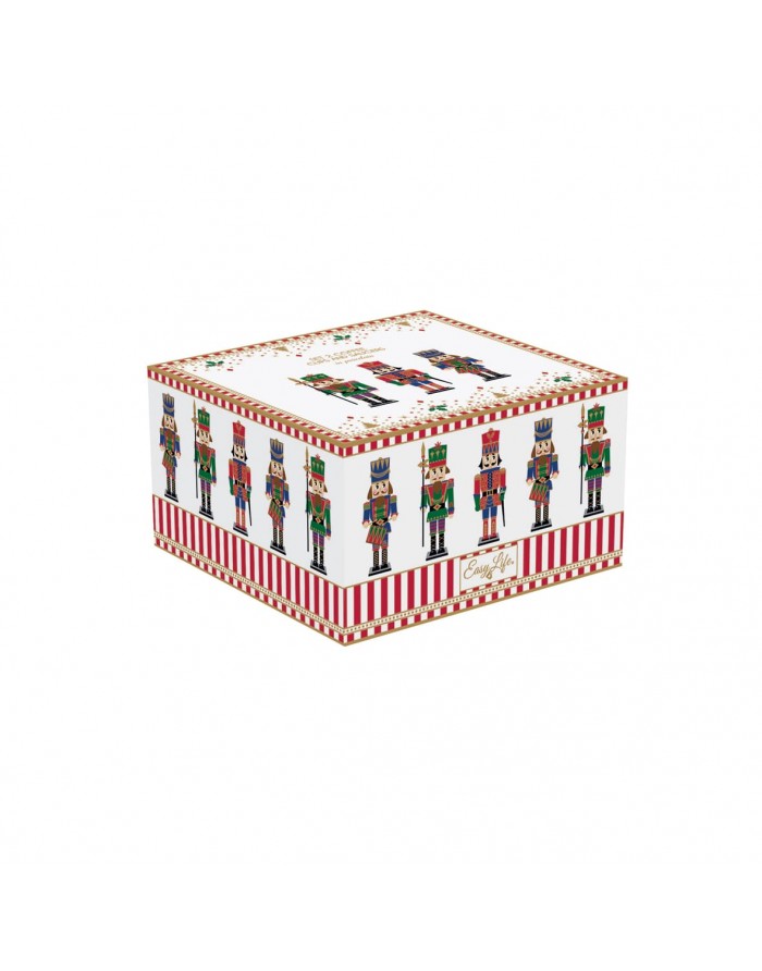 Fuente de porcelana con silueta de árbol con decoración navideña.