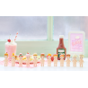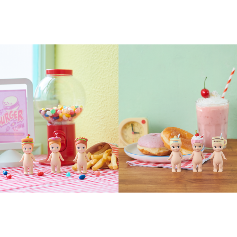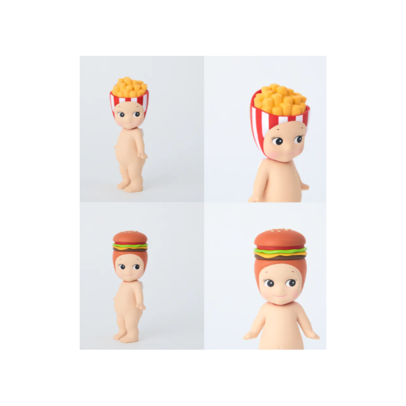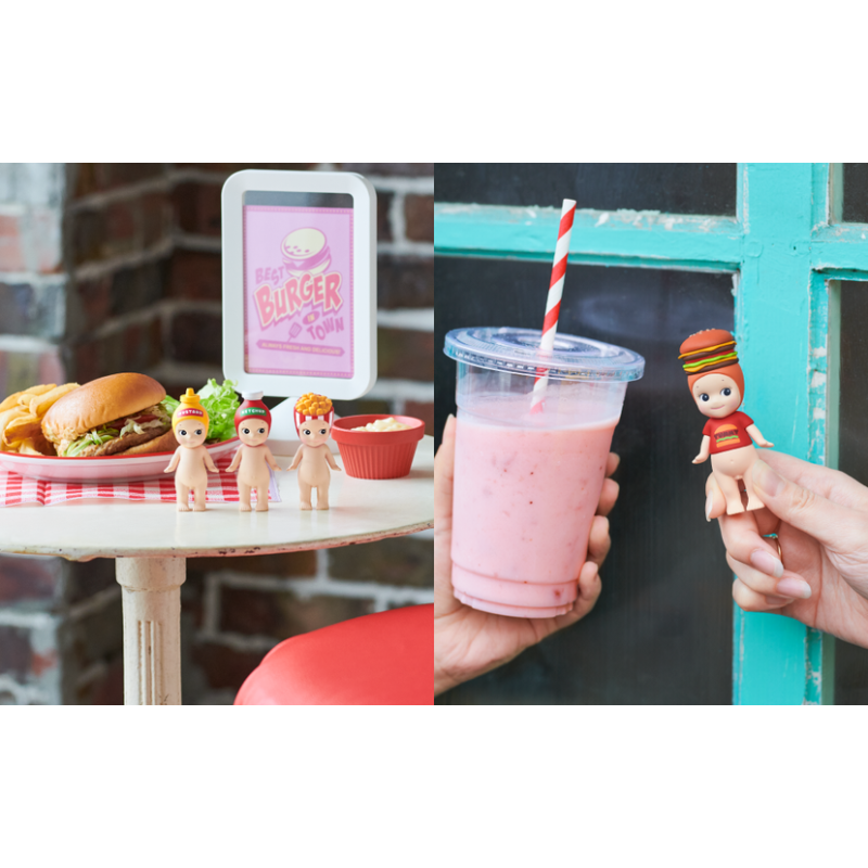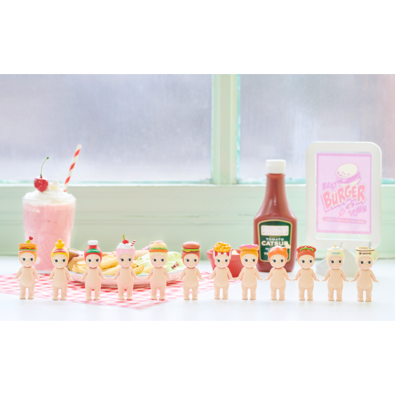 Compuesto de hamburguesa, patatas fritas, perritos calientes, ketchup, mostaza, batido... y uno sorpresa.